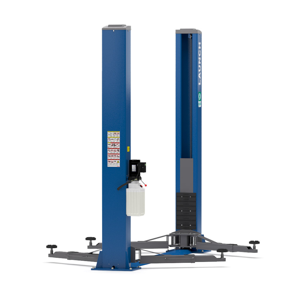 Двухстоечный подъемник Launch TLT-240SB для обслуживания легковых автомобилей (в том числе крупных SUV) и микроавтобусов. Цвет – синий.