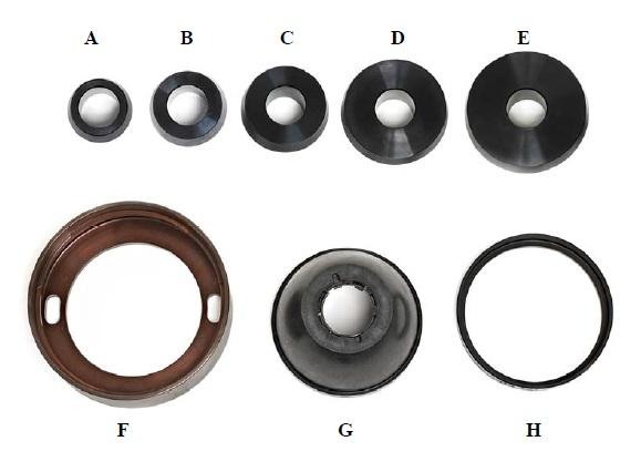 Комплект колет подходит для большинства колёс легковых автомобилей и пикапов. Включает 5 колет. Диапазон от 51 мм до 126 мм.