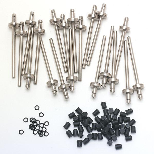 Комплект включает (20) 120 мм пальцев упорных с “O” кольцами и 56 пластиковых заглушек.